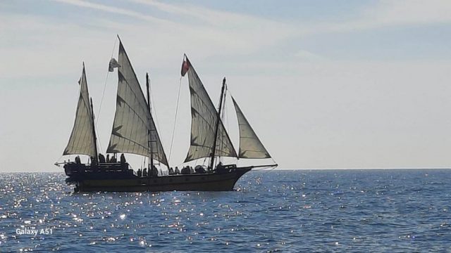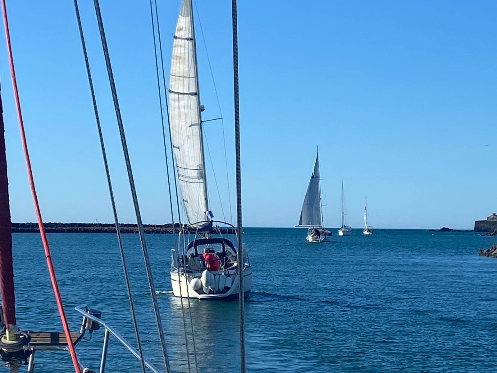Retour, Lundi de Pâques sous voiles grâce à Éole pour notre navigation de retour au Cap, où nous pouvions apercevoir les Navires de légende de L’Escale de Sète.